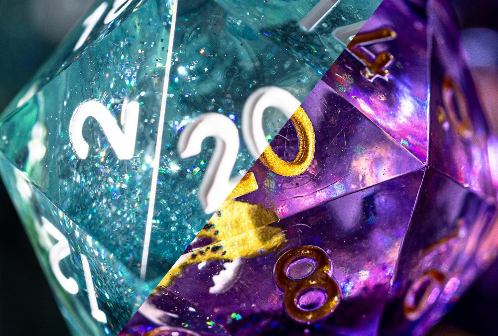 Unsere beliebten Sharp Edge Resin Dice „Dynasty“ und „Feywild“ mit Liquid Core sind jetzt in größerer Stückzahl verfügbar.