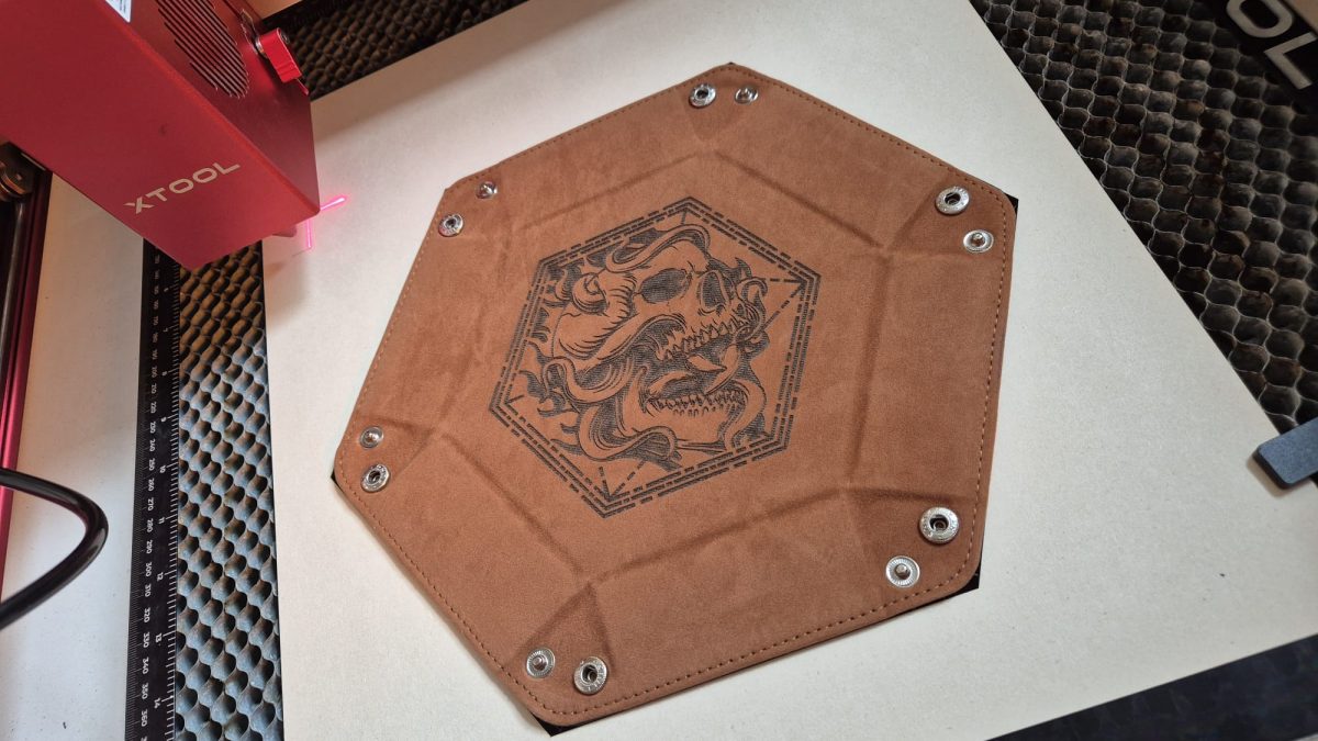 23. September 2025Laser Day bei uns im Legendary Items Hauptquartier! Schon auf der letzten Messe hatten wir unsere neuen Dice Trays dabei – heute prüfen wir das Prinzip auf Herz und Nieren, testen verschiedene Motive und Settings. Natürlich starten wir stilecht mit unserem Spicy Skull Motiv, das in mehreren Varianten auch in unserer kommenden Kickstarter-Kampagne erhältlich sein wird.