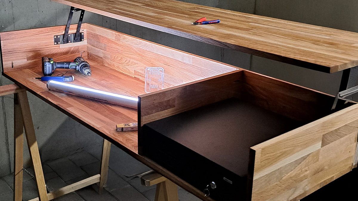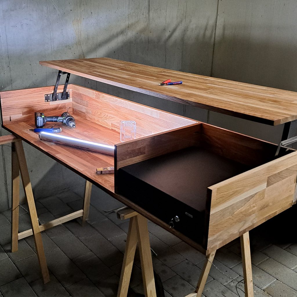 Darum folgt jetzt Step 2 unseres Custom Builds: Ein Tisch mit modularen Befestigungsmöglichkeiten für unsere Riser.