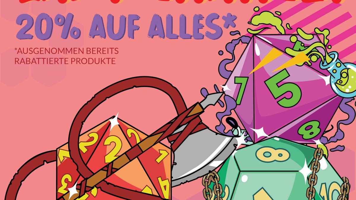 Nur noch heute und morgen bekommt ihr 20 % Rabatt auf alle Würfel und Zubehör in unserem Onlineshop.